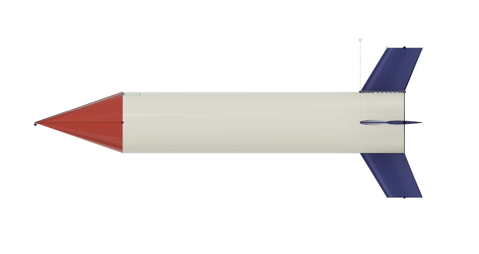 Once the participants have gotten a valid design from their simulation, they can then proceed to design the layout using CAD. This is a full mock-up of the rocket, from fins all the way to the nose cone.